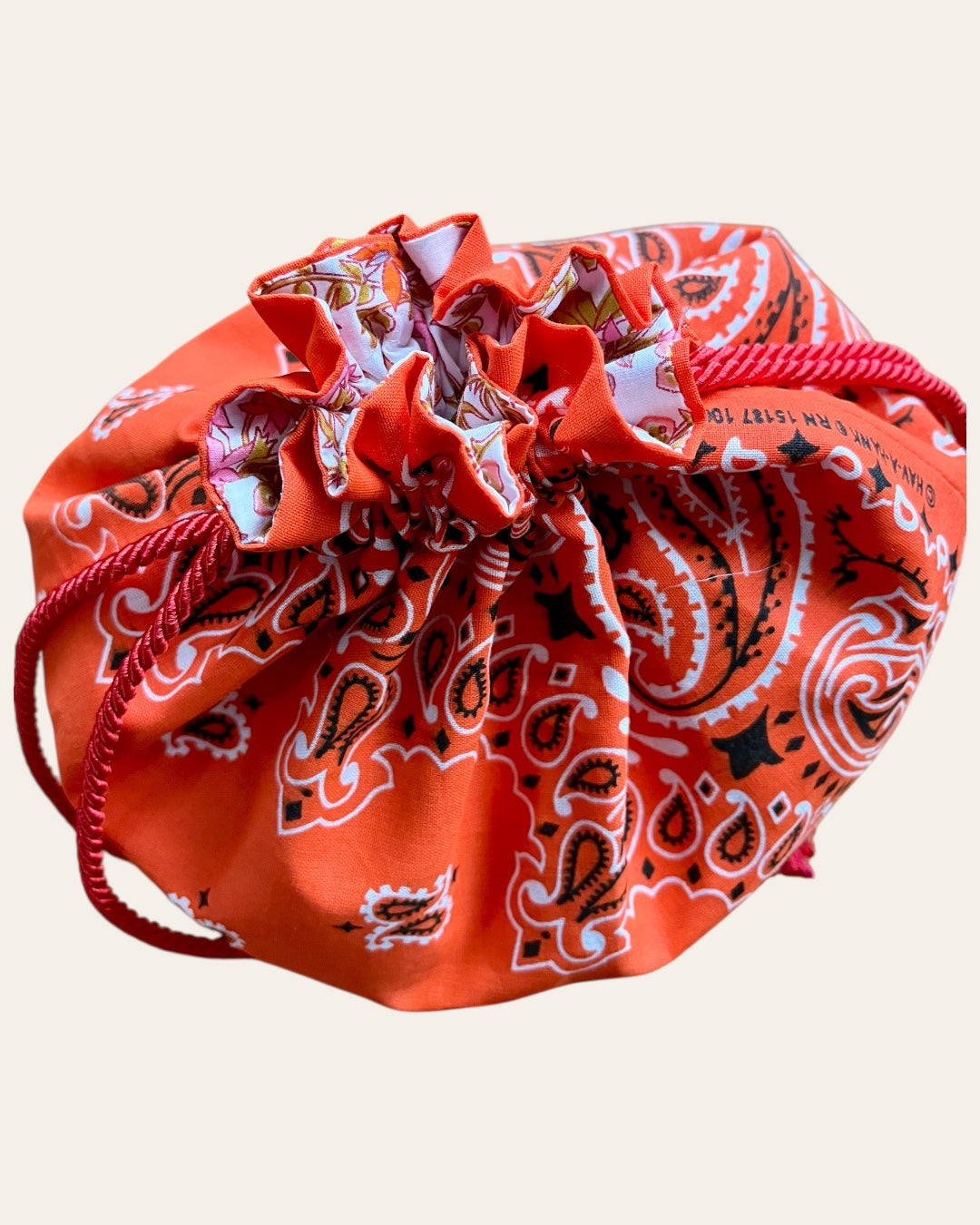 Les bandanas sont colorés avec une teinture pigmentaire, cette teinture est respectueuse de l'environnement. Il est donc préférable de laver séparément pour un premier lavage. Les bandanas sont imprimés de manière traditionnelle, ils peuvent donc varier légèrement et certaines teintures peuvent parfois dégorger. Les couleurs de bandanas foncées ont plus tendance à s'éteindre aux contacts des couleurs claires et de l'humidité.